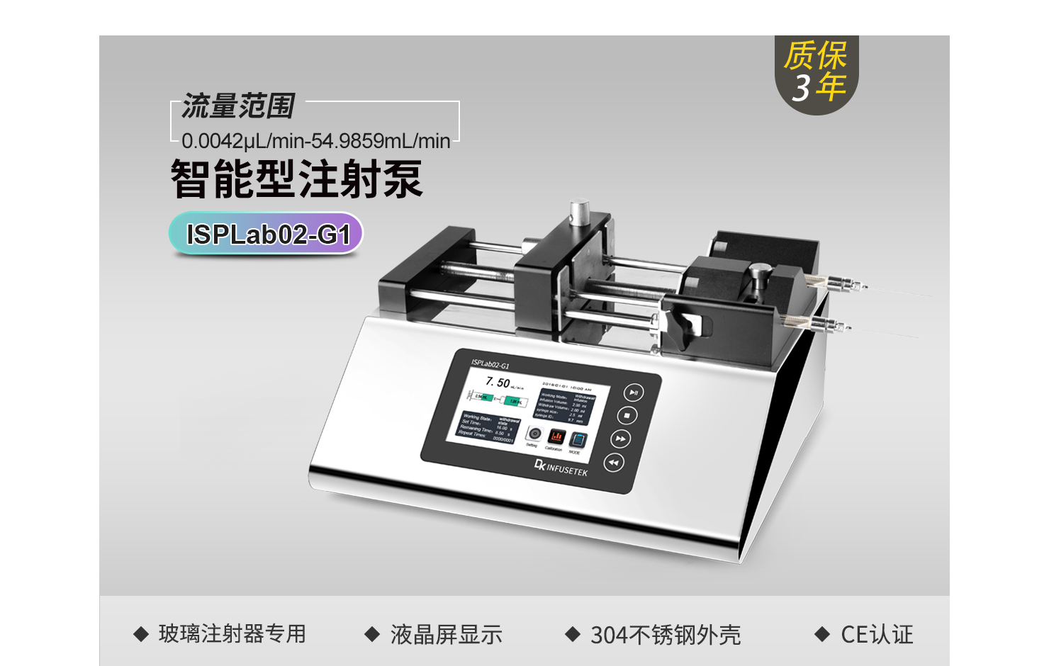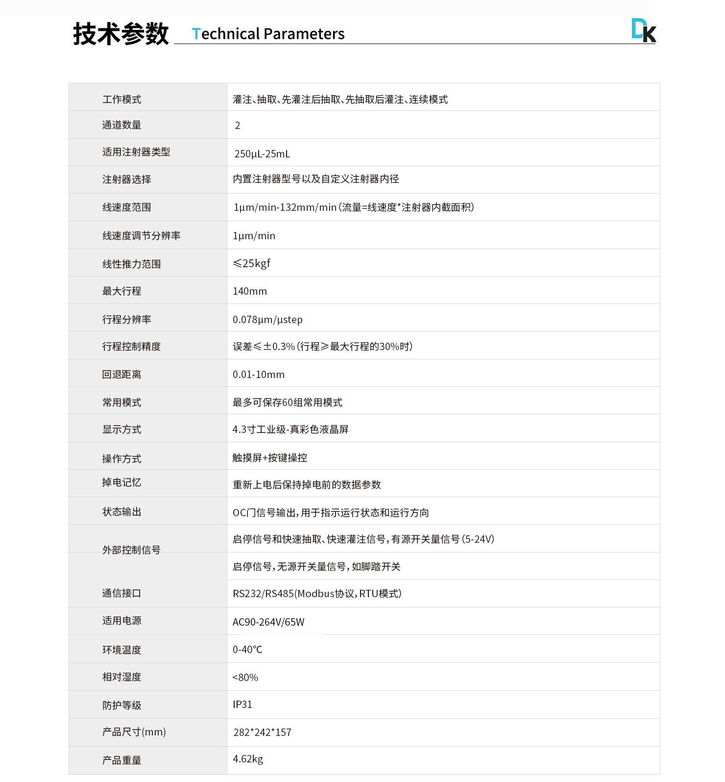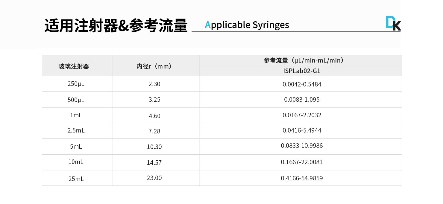線速度范圍:1μm/min-132mm/min(流量=線速度*注射器內(nèi)截面積)