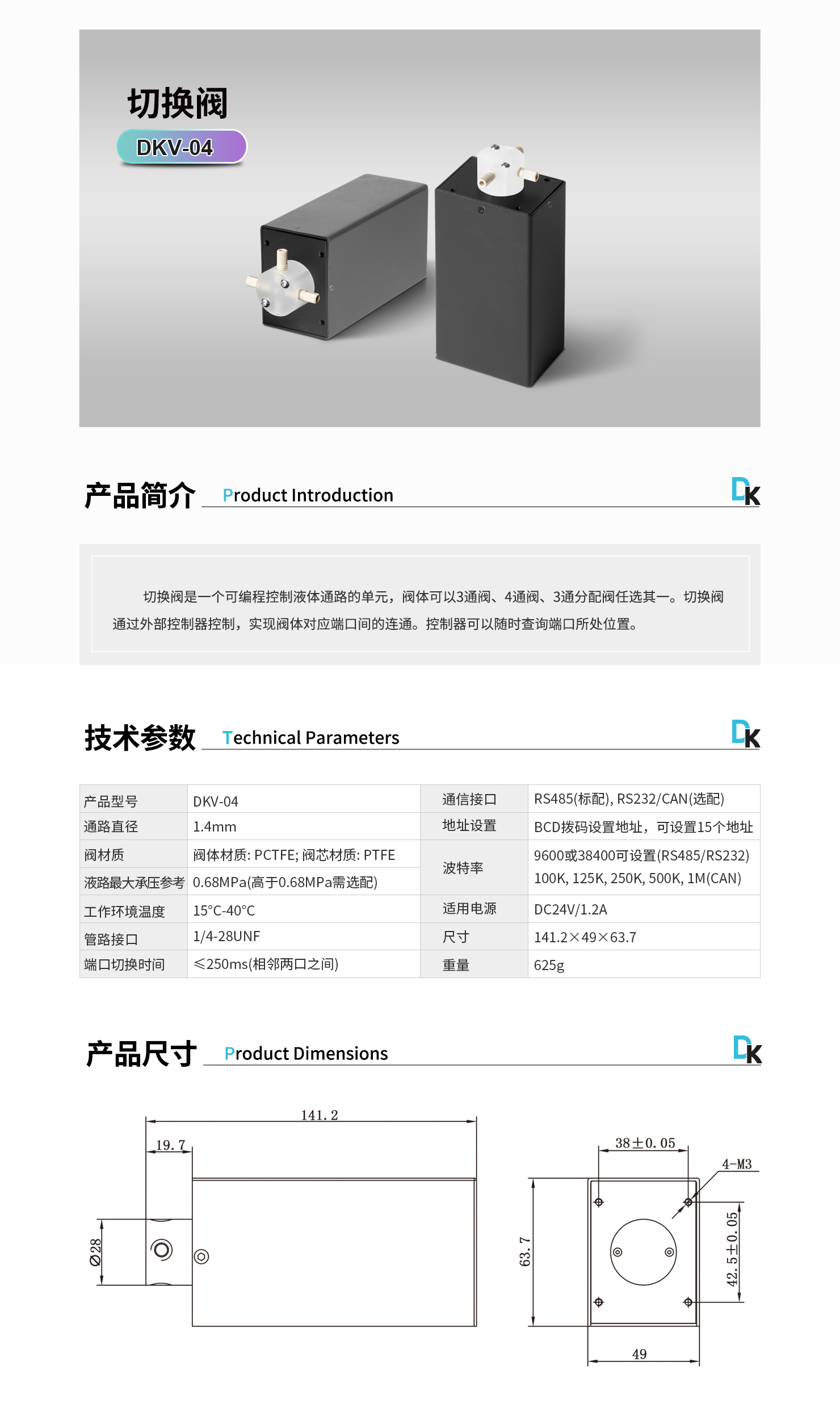 切換閥是一個(gè)可編程控制液體通路的單元,閥體可以3通閥、4通閥、3通分配閥任選其一。切換閥通過(guò)外部控制器控制,實(shí)現(xiàn)閥體對(duì)應(yīng)端口間的連通??刂破骺梢噪S時(shí)查詢(xún)端口所處位置。
