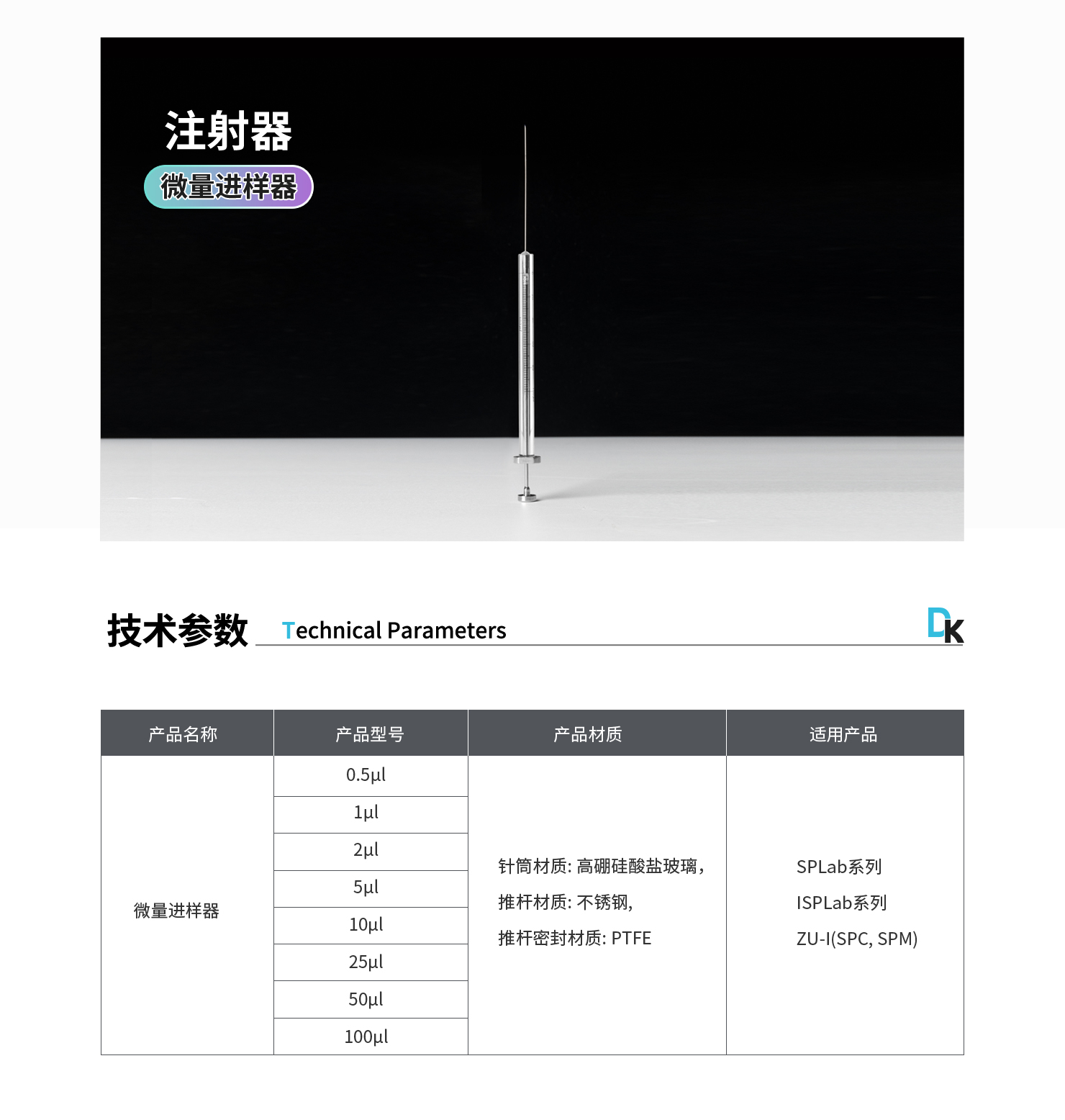 注射器型號(hào):0.5μL、1μL、2μL、5μL、10μL、25μL、50μL、100μL